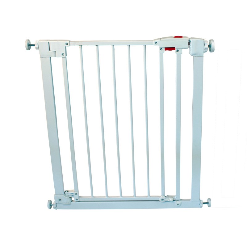 铁安全门 铁安全门 安全门可有效防止宝宝进入一些危险的地方,比如楼梯,厨房。 双向开关,上下双锁,防止宝宝误开启。 适用于74-77cm的开口,如超过此尺寸,请配合使用加长件。 产品规格: 适用年龄: 6-24个月 净重: 5.9kg 纸箱尺寸: 925*65*820mm 数量/箱: SKU No.: SSGPT-101 产品详情
